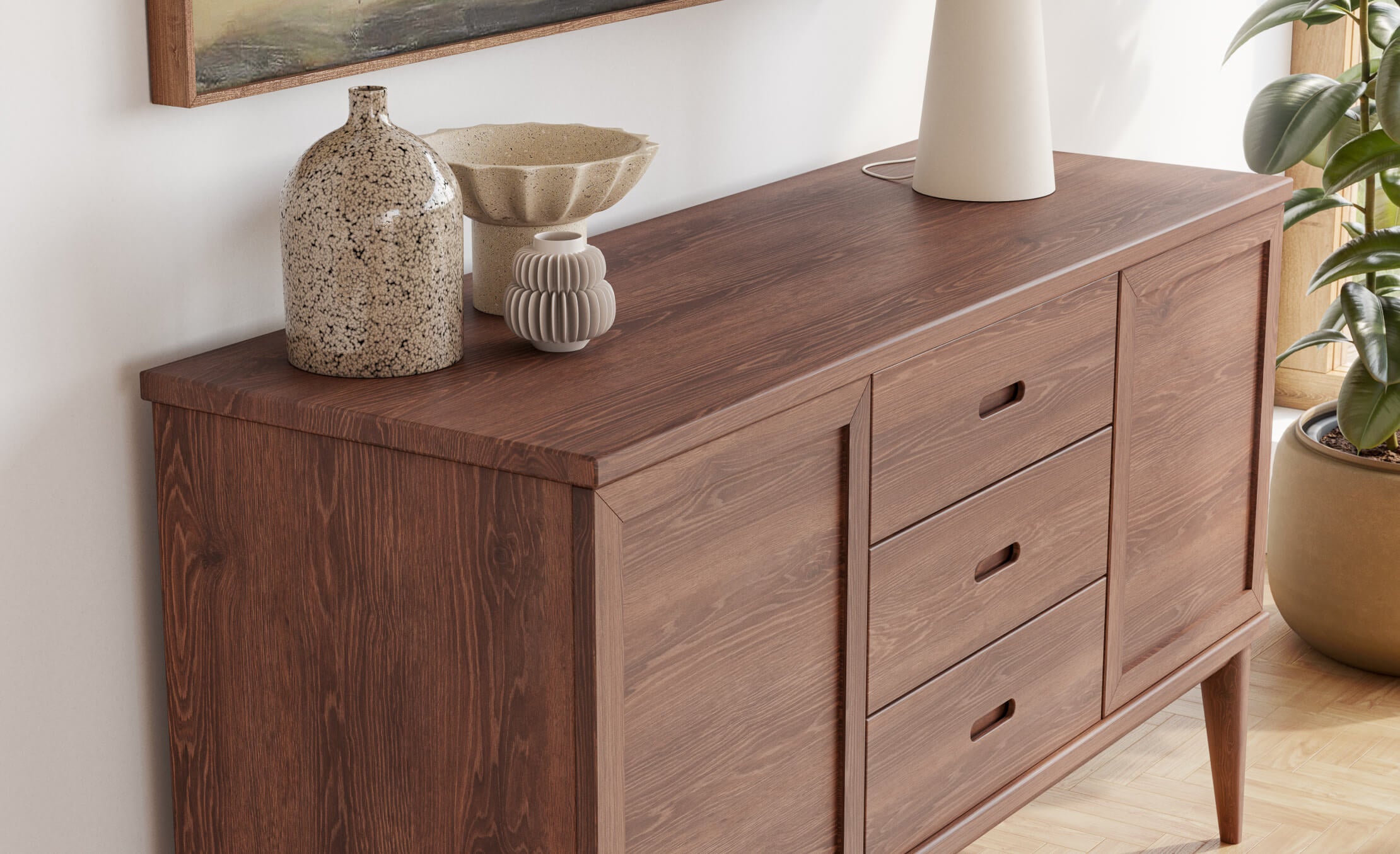 Whether you’re looking for a piece to stash dishes or drink materials. modern’s tiered and dual-sided cabinetry creates intentional space for just about anything that needs to be tucked away. With its smooth touch and push closure. organizing won’t ever be a chore.