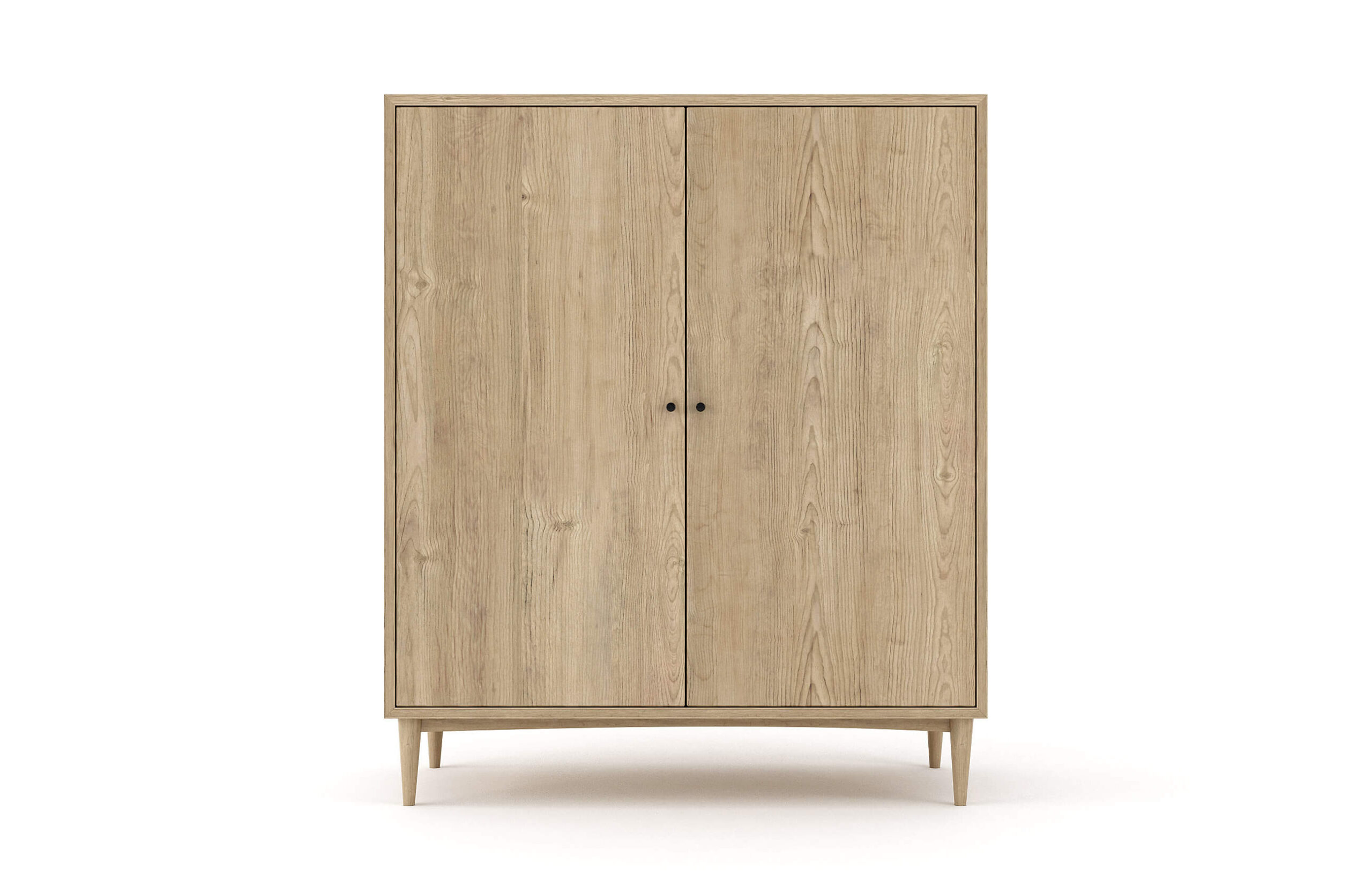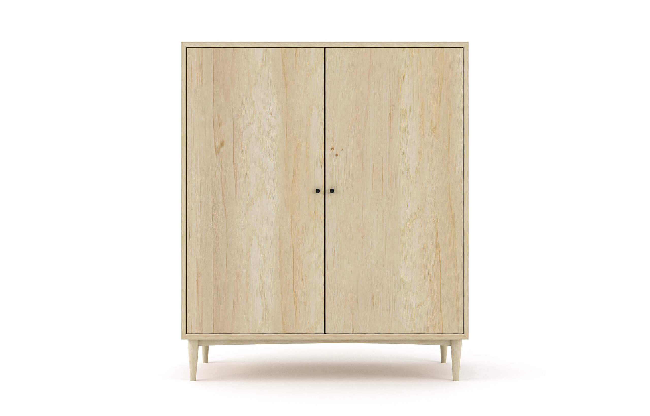 Add storage and polish to your bedroom or entryway with our modern Armoir. crafted in your choice of FSC-certified Maple or Walnut. Expressions of craftsmanship like classic joinery and an arched base give even more beauty to its refined. modern build. with a nourishing. natural beeswax finish that gives the piece a subtle. matte glow. Cabinet interior features a garment-hanging bar and six soft-close drawers.